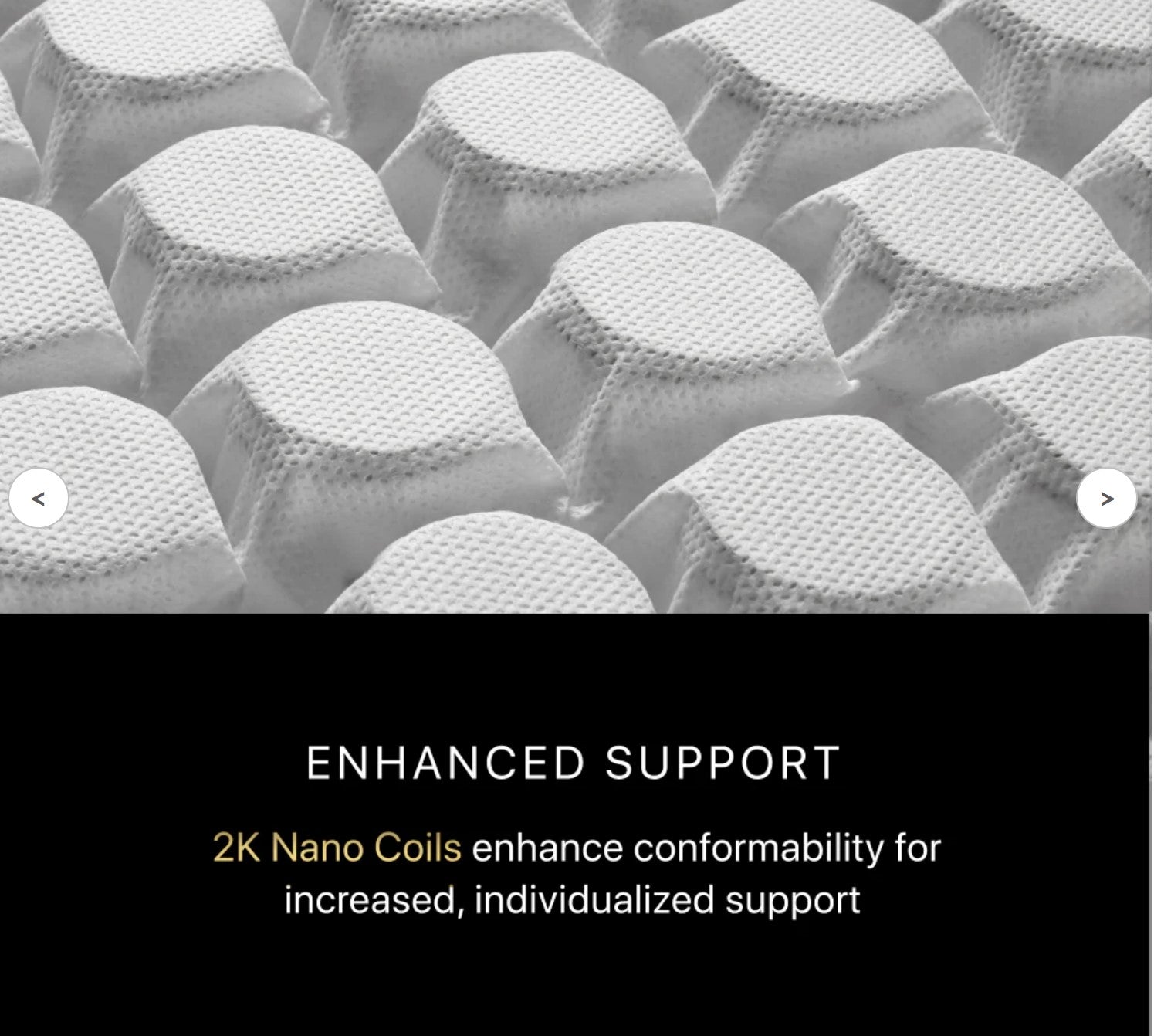 - A layer of 2K Nano Coils enhances conformability for increased, individualized support.
