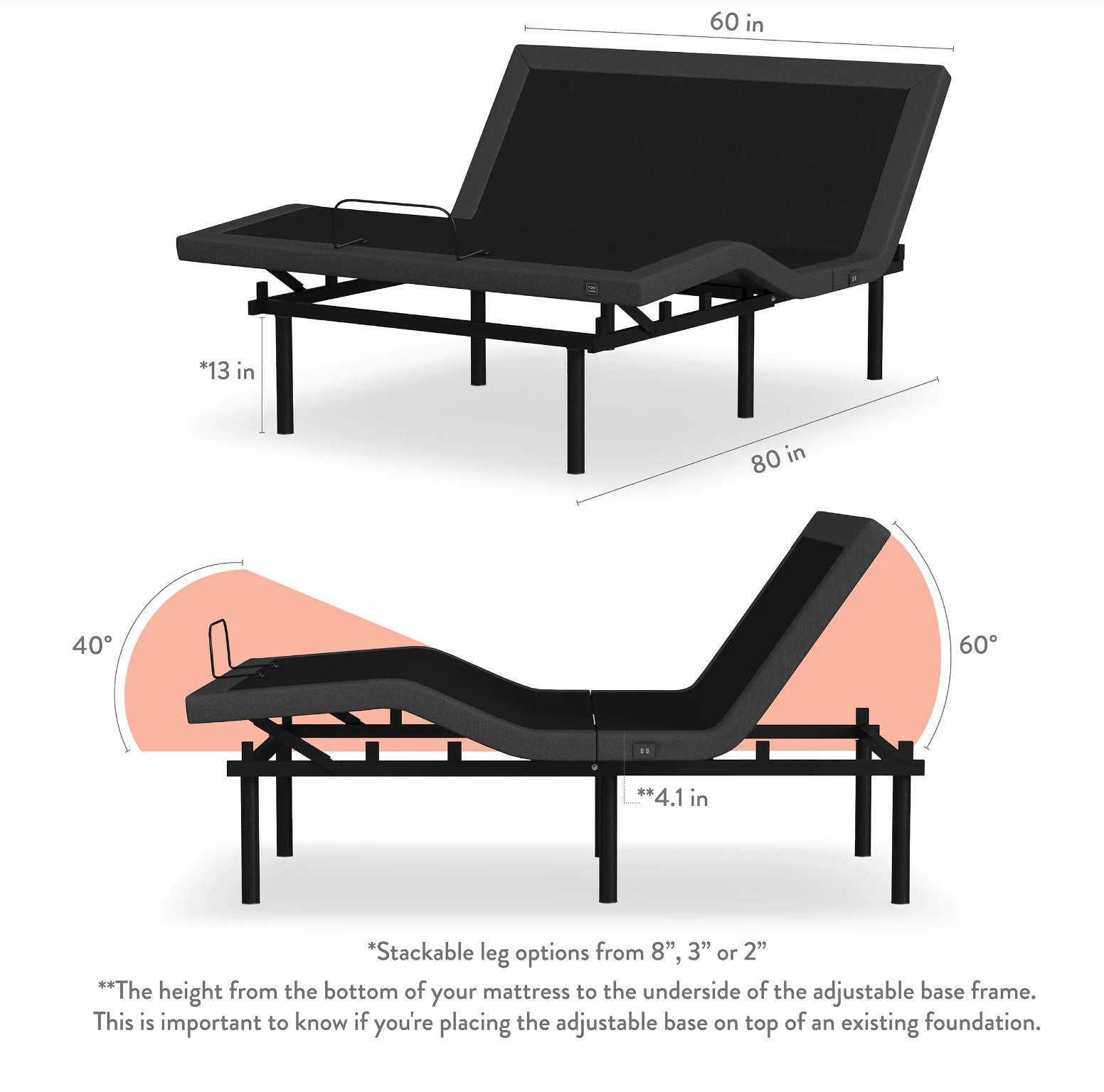 A full-featured power base for a restful night’s sleep. Equipped with a range of features like heavy-duty lift motors, massage, under-bed lights, and more. Its zero-clearance design allows the Clarity II to be placed on top of platform or pedestal beds. A programmable remote and voice-powered app lets you set and save your favorite positions. Available in King and California King sizes as one piece, for a low-cost and convenient way to get a bigger bed.